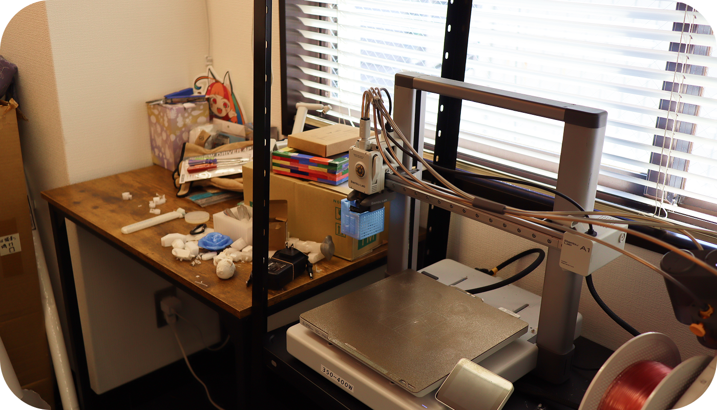 あと3Dプリンターがあるので、スタッフの好きなキャラを私が絵に描いて、それをガチャガチャに入るくらいの大きさに3Dで制作しています。3Dデータの作り方は事業所で教えていただきました。