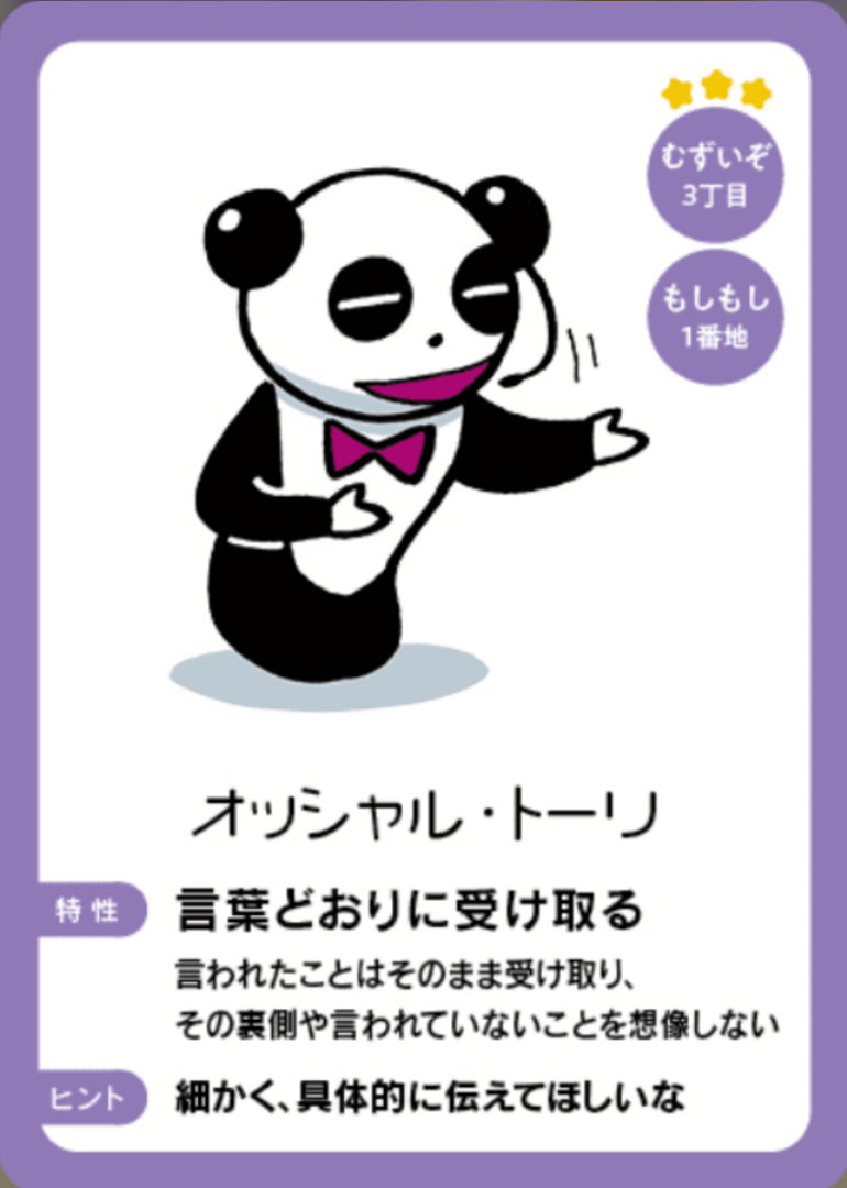 さちこさん自分がこの特性を持って生きるなら、と想像するんだよ~。いまちゃんなりの考えでいいから!